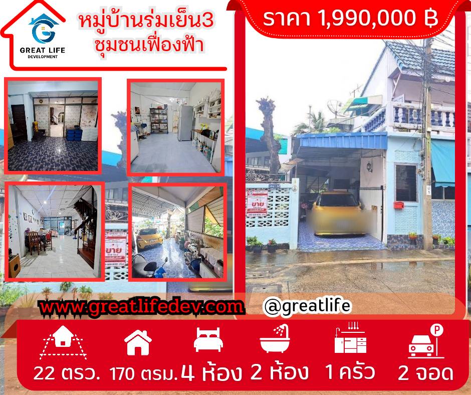ขายทาวน์เฮ้าส์ราคาถูก หมู่บ้านร่มเย็น3 ชุมชนเฟื่องฟ้า ถนนสุขุมวิท ปากน้ำ, เมืองสมุทรปราการ ฿1.99 ลบ. ผ่อน /เดือน 0-0-22 170 2 4 2 2